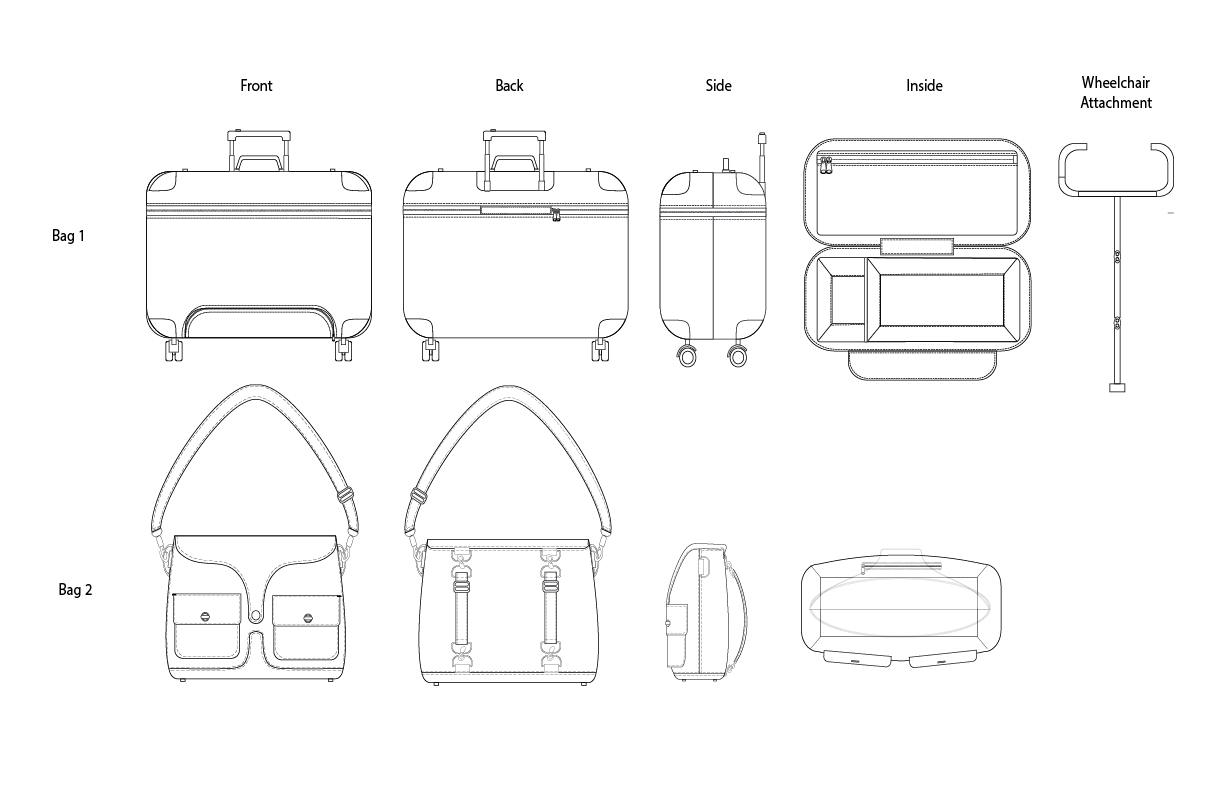 Runway to Runway is a collection of luxury travel accessories designed for a collaborative vision between Jimmy Choo and Marriott. The collection includes a weekender bag, roller bag, passport cover, and luggage tag, all designed with cohesive materials, refined detailing, and functional considerations. Color and materials design was developed to align with both brands’ visual identities. The project also features a custom wheelchair attachment designed to support accessibility, integrating inclusive design principles with functional luxury.